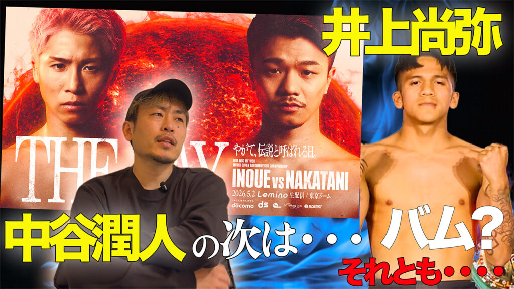 井上尚弥選手が中谷潤人戦後、「もう1試合やってフェザー級に上げる」という流れを示しています。